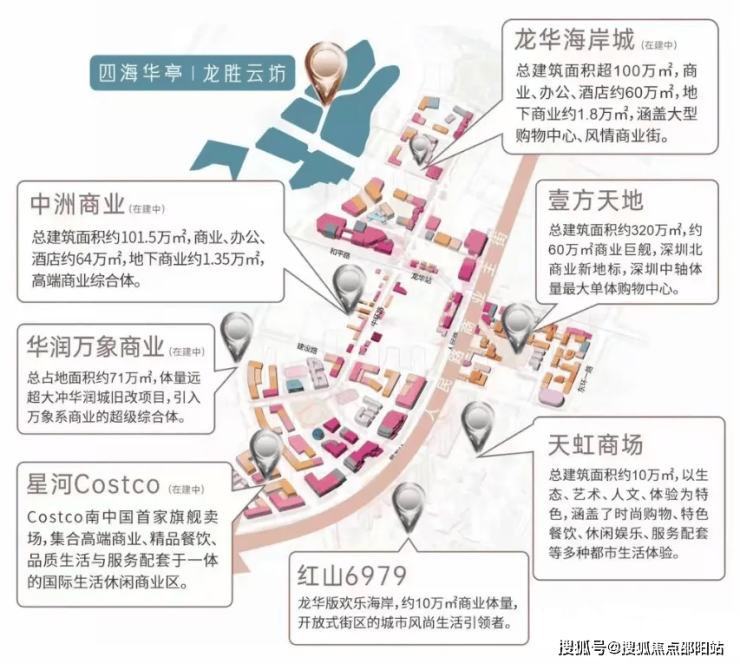 【四海华庭】小区位于龙华国际商圈规划中心范围内, 规划为打造规模超200万㎡的市级核心商圈和世界级未来消费体验中心,而且目前也正在完善当中,多数已经开始动工,项目周围不论是海岸城或者中州华润等旧改,基本都是以此为基托,未来层面上,所有商圈通过空中连廊串联后,将得到巨大的提升空间;