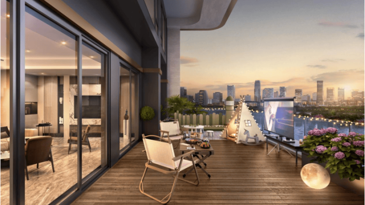 82㎡偶数层露台侧扩1250-1450mm,打造29-30㎡空中花园,解锁82㎡使用率超137%,实现豪宅级露台尺度与多元生活场景兼容,成为全城当前突破空间设计的标杆。