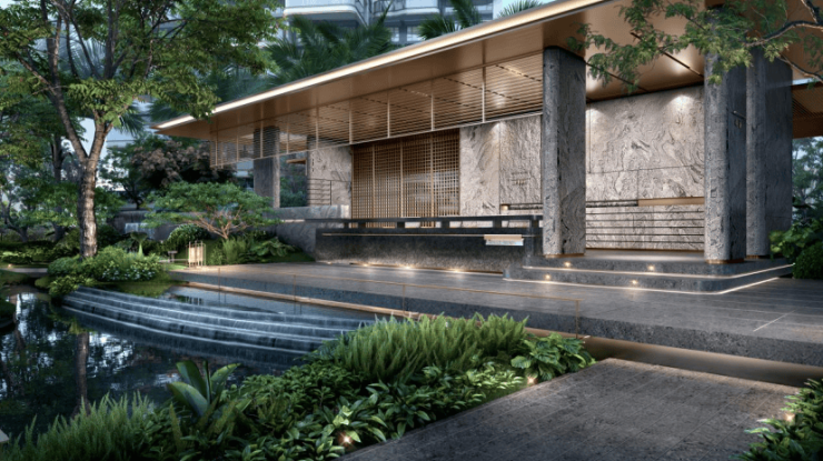 同时,招商·林屿境以匠造度假酒店式森系轻奢住宅为目标,致敬湾区精英圈层。林屿境作为招商蛇口林屿系4.0产品,从小区的建筑立面、园林景观到室内设计均由重量级大师亲自执笔设计,约49.7米宽的奢华金属大挑檐的门庭,两侧采用鱼鳞状黑钻奢石立面的水景,以稀贵的库班绿奢石打造的约7.3米高的单元入口大堂...以独特的艺术纹路,尽显细节感和品质感,每一处细节,都经过了精心的设计与编排,让归家的每一步都尊贵不凡。真正做到,家不仅仅是一个居住的场所,更是心灵的归宿与身份的象征。