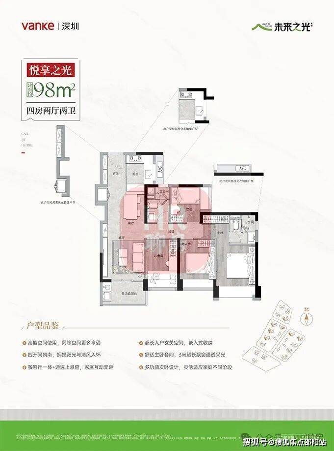 98㎡四房两卫【654-730万】超高使用率四房,折扣更大