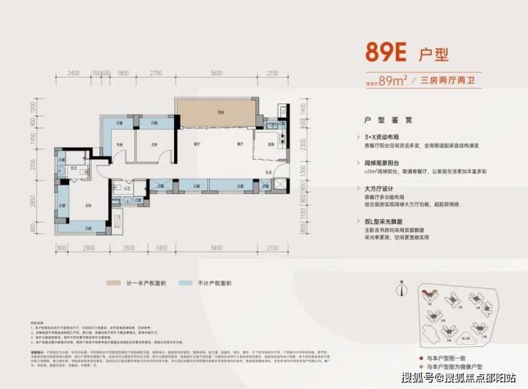 约5.6米开间的大方厅格局,可打造3+X的成长型空间,轻松满足三代同堂甚至四世同堂的居住需求,约11㎡的宽阔阳台空间,也可以打造成书房、影视房、游戏厅、茶室等,满足了小家庭的生活需求,实现超配获得感;