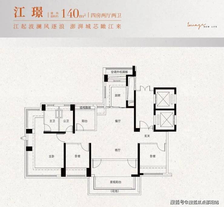 ③建面约140㎡:大四房两厅两卫,北向一线望江,稀缺板楼设计,专梯专户,尊享高贵
