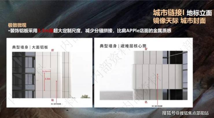 外立面采用大面积铝板设计,为减少分缝过多打破一致性,琶洲·樾 | 华樾采用的是足足3.3米尺度超大定制尺寸铝板。