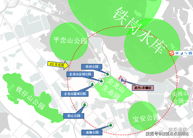 自然环境及休闲娱乐:项目的休闲娱乐非常优质,步行几百米就有篮球企龙山篮球公园和足球公园,项目对面即是企龙山生态园,除此之外项目2公里范围内还有一个规模很大的市政公园“宝安公园”。项目自然环境资源也是非常丰富,项目北侧就是铁岗水库,西北侧是平峦山公园,西南侧是铁仔山公园等多个公园环绕。