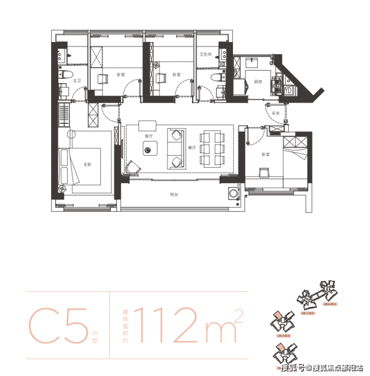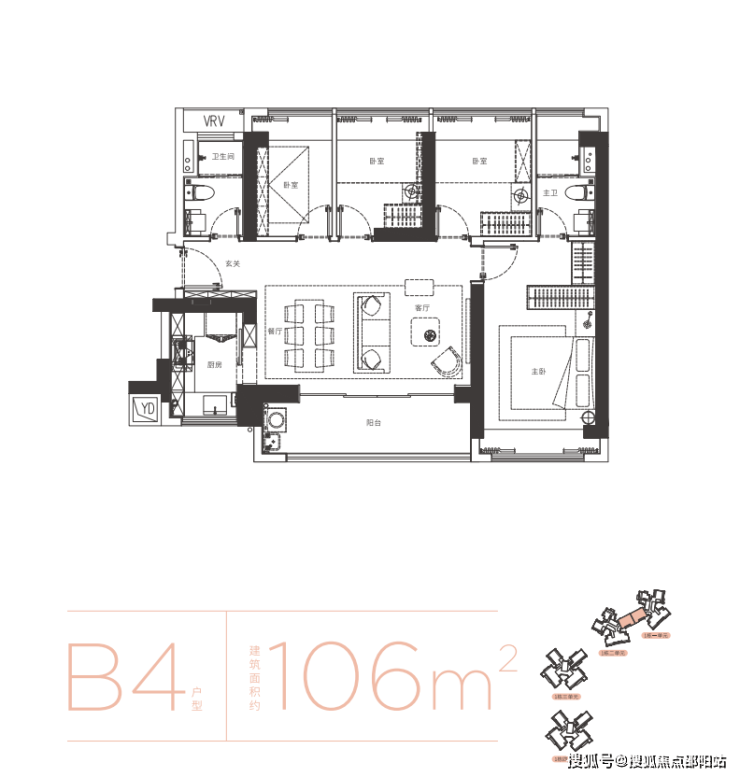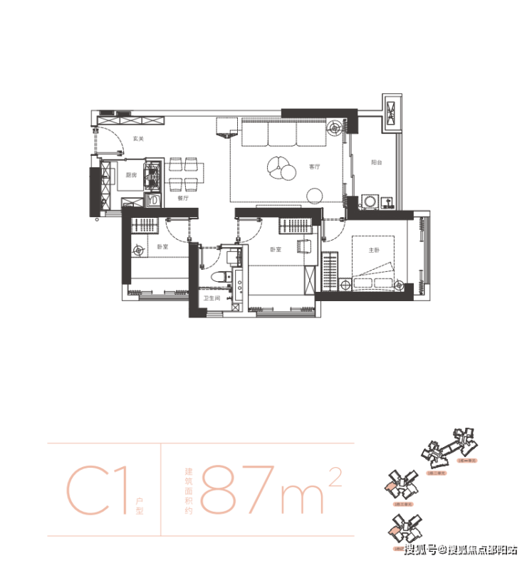户型推出住宅1044套,面积87-95-105-112-120㎡。