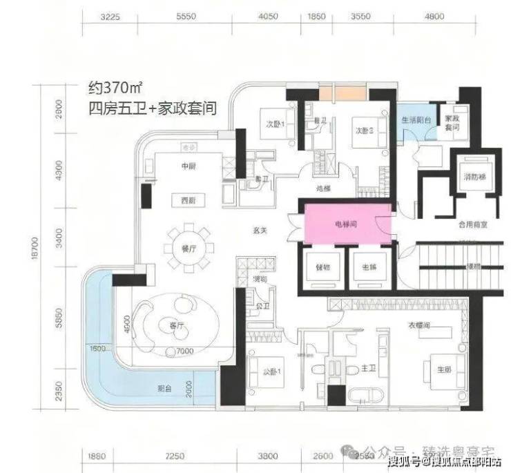 一层两户,经典大平层:约285㎡主力户型,空间布局方正大气,功能完备。