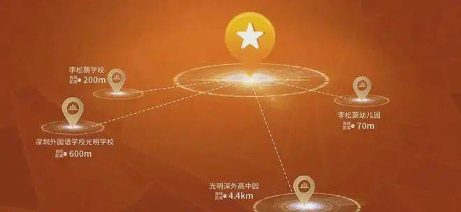 深圳外国语学校高中园光明高中园,直线距离约4.4公里,内设致远、博雅、弘知、理工四所高中,办学规模分别为36班、54班、60班、30班,提供9000个学位。