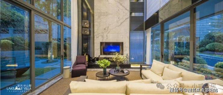 为了将景观面放到最大,会客厅采用6.6米挑高设计。加上全景落地玻璃,推门即见云山南湖的惊艳感扑面而来。