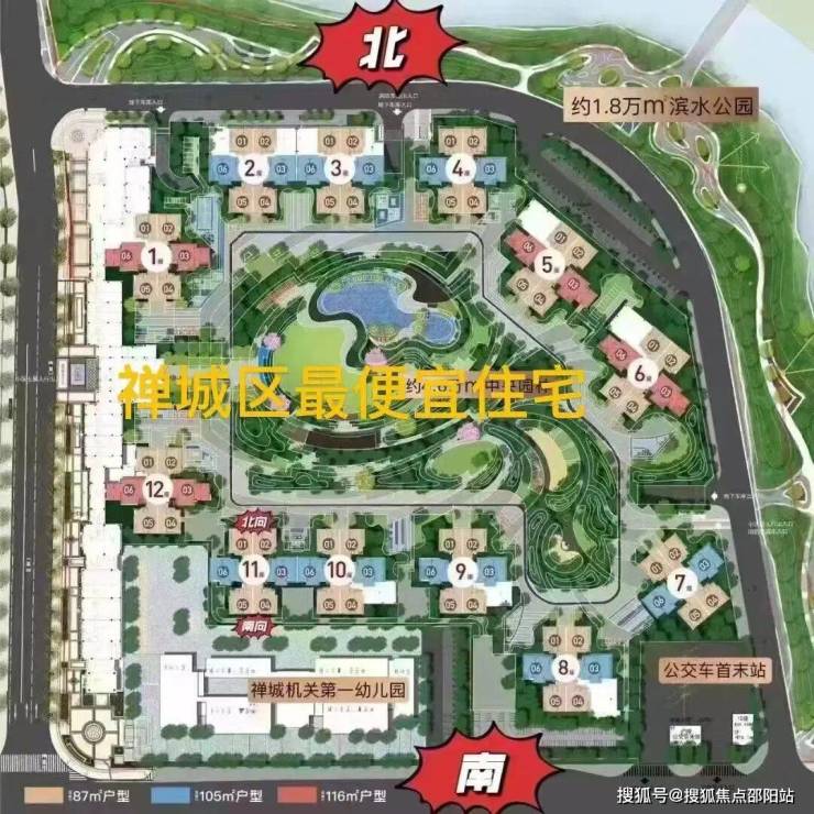 项目采用了围合式的布局,东西/南北的楼间距都超百米,将小区内超过4万平方米打造成中央园林,外部还建有大约1.8万平方米的环状滨河公园,实现了双重园林享受