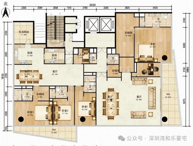 优点:3.45米极限层高,打造完美开阔空间比,主卧通透,双景观面,6米主卧开间,景观浴室,奢侈衣帽间,6米客厅开间,超大餐客厅。