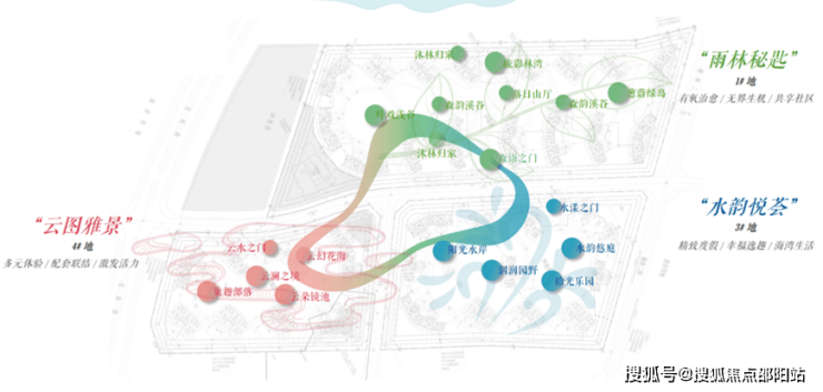 在规划创新上,以云图雅景、水漾悦荟、雨林秘钥为主题的三大景观地块,展开各具特色的泳池、邻里社交空间以及儿童娱乐场所。通过溪水、丛林、灌木层层递进的归家动线,将热带雨林生活方式最大程度还原给居住者。