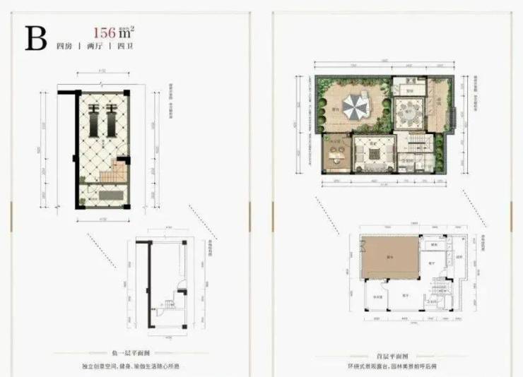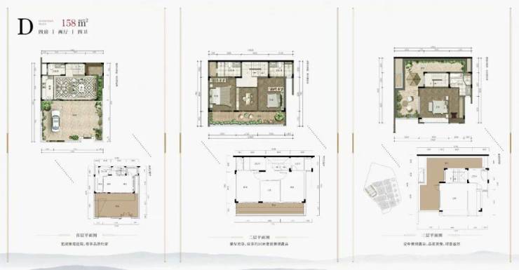 136㎡合院C户型户内庭院面积近60㎡,饱览天地的主庭院、一角风韵的下沉式庭院、情景交融的超大露台……各有情致,趣意盎然。