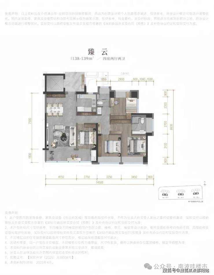 建面约138-139㎡四房两厅两卫