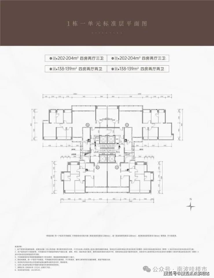 建面约202-204㎡四房两厅三卫