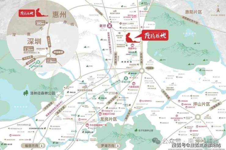 隆腾盛世,位于惠阳新圩,龙岗大道与东风路交汇处,雄踞深圳东进战略要地。新圩紧邻龙岗坪地街道。项目距离龙岗坪地仅一路之隔。享受着深圳的交通辐射红利。