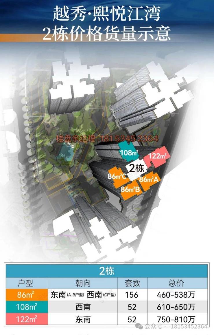86㎡(东南、西南向),3房2厅2卫,总价450-538万