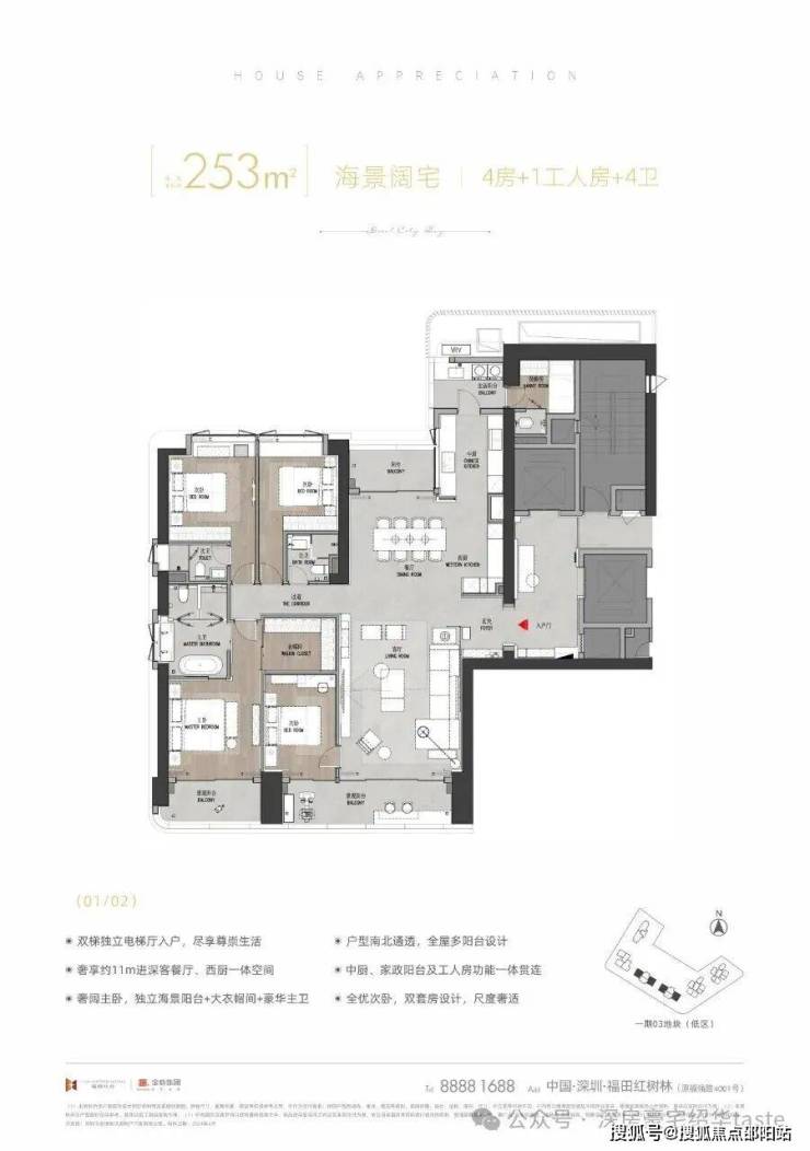 253平米4+1房2厅4卫南北通透10楼以上都能看海