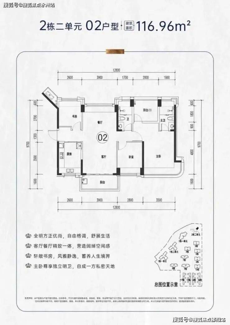 项目户型介绍:社区产品面积段包括112-116-120㎡4房2卫,195㎡4+1房4卫,本次推出116户型4房2卫