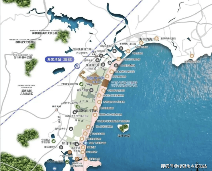 ◎通达交通属性——距离海岸线约 2 公里,距离海南环岛高速路约 4 公里,通往高铁站及机场都十分便利,未来还规划了海棠湾高铁站,建成后出行更加便利。