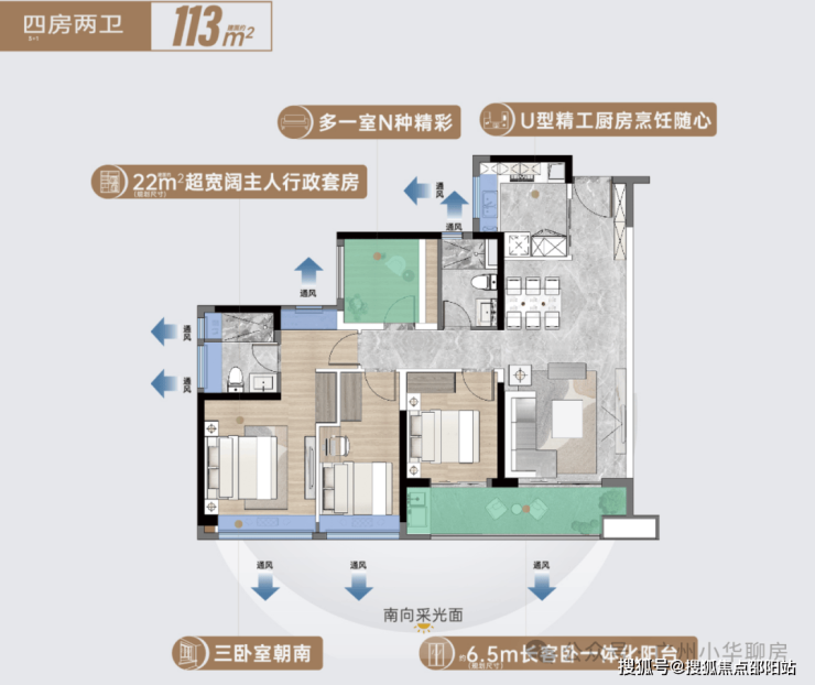 ➧ 8大飘窗+2大灵动空间,超高得房率
