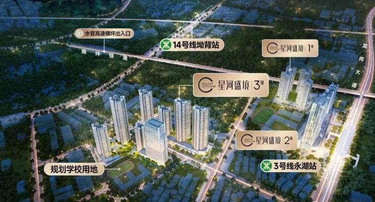 在交通出行上,星河·盛境御府深度契合人居需求,周边地铁3号线永湖站、14号线坳背站环伺左右,1站到大运、5站抵罗湖、6站通福田。未来,更有地铁21号线(规划中)8站到南山,大运中心交通枢纽换乘33号线(规划中),7站可达机场东,无界通达全城。