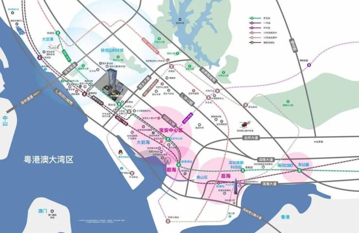 机场:深圳宝安国际机场;城轨:毗邻穗莞深城轨西乡站(施工中)
