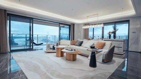 踏入客厅,目之所及皆是江景,首创近20米巨幕阳台,形成270°环幕式观江台。