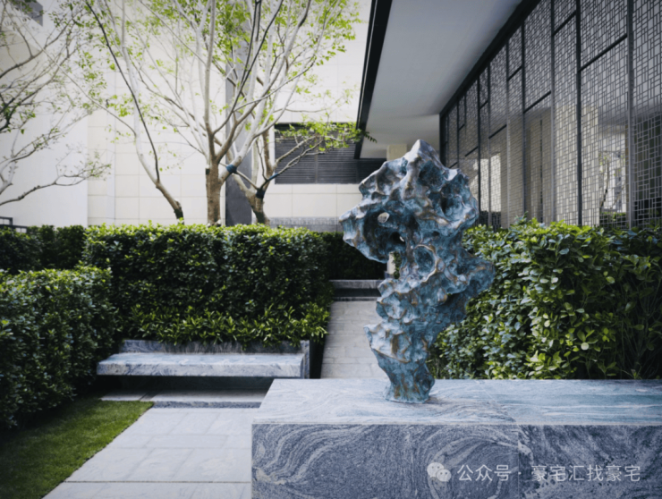 60多个驻足座椅,采用贝金米黄及汉白玉等120吨名贵石材打造,平均每一块座椅就达2吨,在深圳所有项目中前所未见。