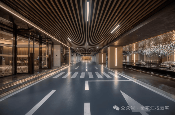 车库极具艺术感的水景,不经意间显露主人格调;密布的灯带24小时照明,减少空间压抑感,并与智慧系统联动,引导业主前往最近空车位;宽敞车位,爱车停放空间绰绰有余。