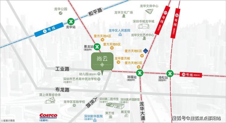 ⭐4号线(已开通):龙华站直线距离约1000m,深圳纵向城市交通中轴。