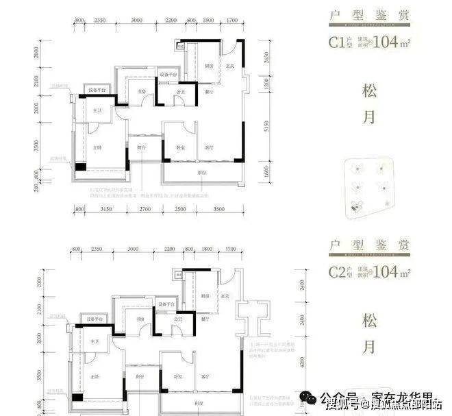 104㎡户型为3+1房2厅2卫设计,竖厅布局。该户型拥有约3.5米面宽的奢阔客厅,外连开间约6米的宽景阳台。