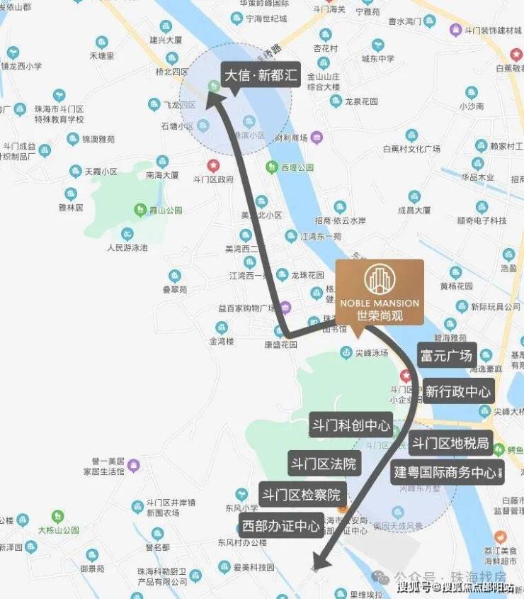 毗邻新行政中心,斗门区法院、斗门区检察院、西部办证中心、斗门地税局等