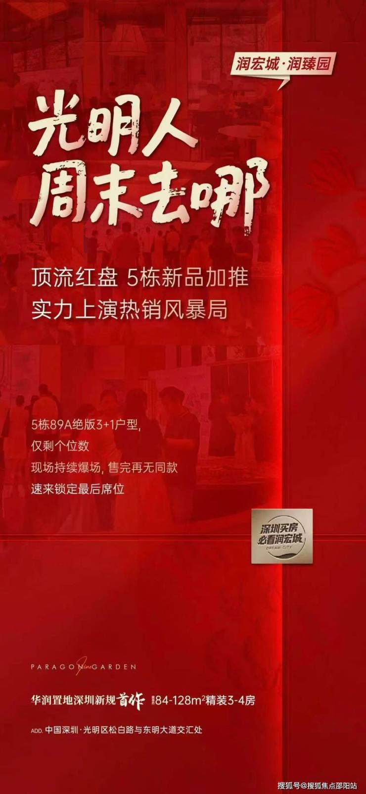 基础信息:开 发 商:华润置地&宏发集团项 目 名:润宏城 | 润臻园占地面积:约2.98万㎡社区配套:约1.5万㎡社区配套(含商业街区、公交车首末站、社康中心、老年人日间照料中心、文体活动室、图书馆、幼儿园、篮球场、羽毛球场、游泳池、健身房、瑜伽室等全功能会所)总 户 数:约1836套数交楼时间:2027年12月项目物业:宏发物业项目地址:中国深圳·光明区松白路与东明大道交汇处接 待 处:光明区凤凰街道润宏城·润臻园城市展厅