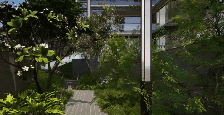 依托项目独特的半山地形与岭南水韵,汲取云南苍山“十九峰十八溪”的天然意境,打造17条逐溪蜿蜒水线和13条林隐通幽山径,项目将山地高差转化为立体景观,既保障私密性又营造出流动的景观视野。户户依山错落,露台如“空中观景台”俯瞰溪林,鸟鸣啭啭,溪流潺潺,绘就一幅“广州真正的溪山栖居图”。