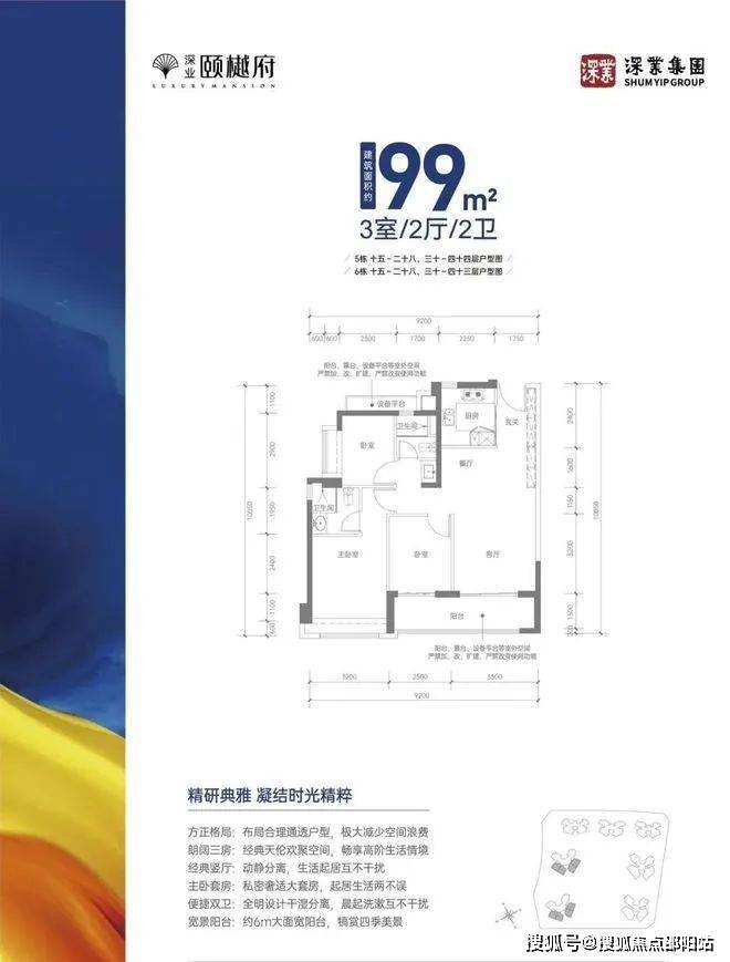 主力户型为99平3房和116平4房,户户朝南,采光舒适,大阳台享受超宽景观面。