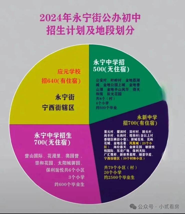 下面是2024年永宁板块各楼盘初中学区划分: