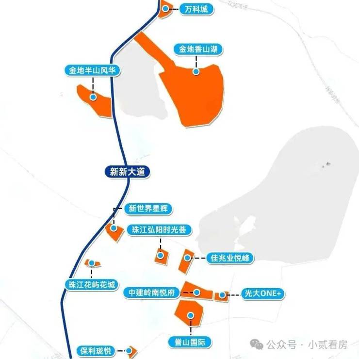 新新大道沿线目前在售新盘,大概18个,主要集中在永宁大道与新新大道沿线