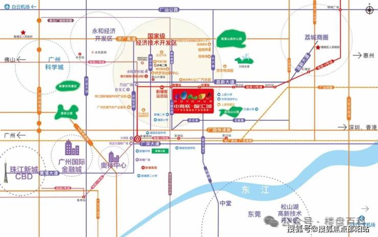 地铁——距离广州地铁13号线官湖地铁站步行2公里,周边还有16号线、28号线、20号线、23号线等地铁线;穗莞深、新白广等2段城际轨道,1小时内9个城市可以互相通达;3条国家级的铁路干线(广深铁路、广汕铁路、京九高铁)在此交汇;