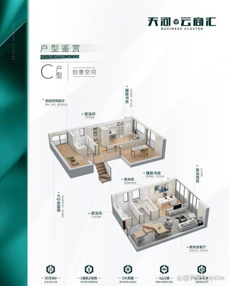 核心商务区,双核驱动格局天河·云商汇位于天河智慧城的核心商务区,南侧紧邻占地7.5万平方米的万科广场。该项目依托天河智慧城的发展潜力和便捷的交通网络,致力于打造集创意办公、企业总部、社交平台、休闲娱乐于一体的全能型理想生活社区。天河智慧城不仅是广州唯一的国家级软件产业基地,也是首批试点5G的区域之一,定位为“广州硅谷”。2020年3月,该区域被定名为广州天河高新技术产业开发区,并在“十四五”规划中被列为天河区的重点发展区域,旨在通过数字经济和人工智能赋能高质量发展。
