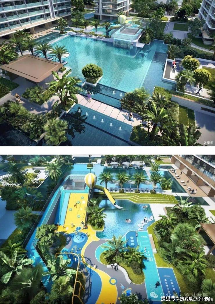 汲取曼谷四季酒店灵感,无边际泳池将奢华建筑与野奢景致自然相融,分区打造立体儿童泳池,特有的叠水景观、水上滑道、攀岩爬道等多元游乐设施,结合城市会客厅、亲水平台和水上汀步等多重景观,营造野奢型国际化度假体验。