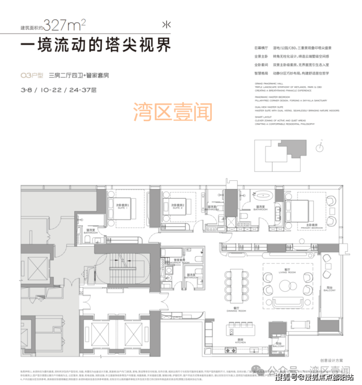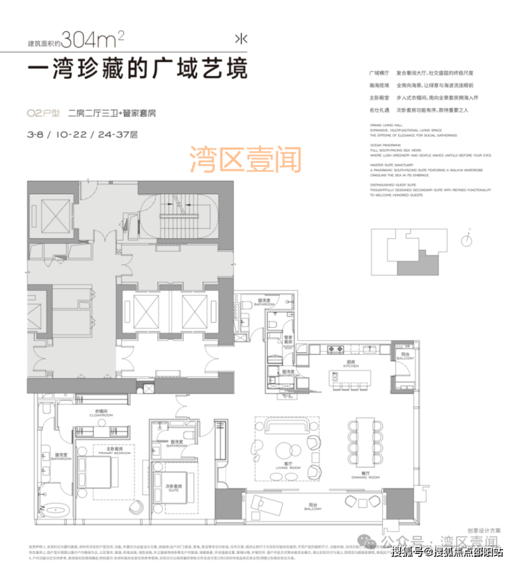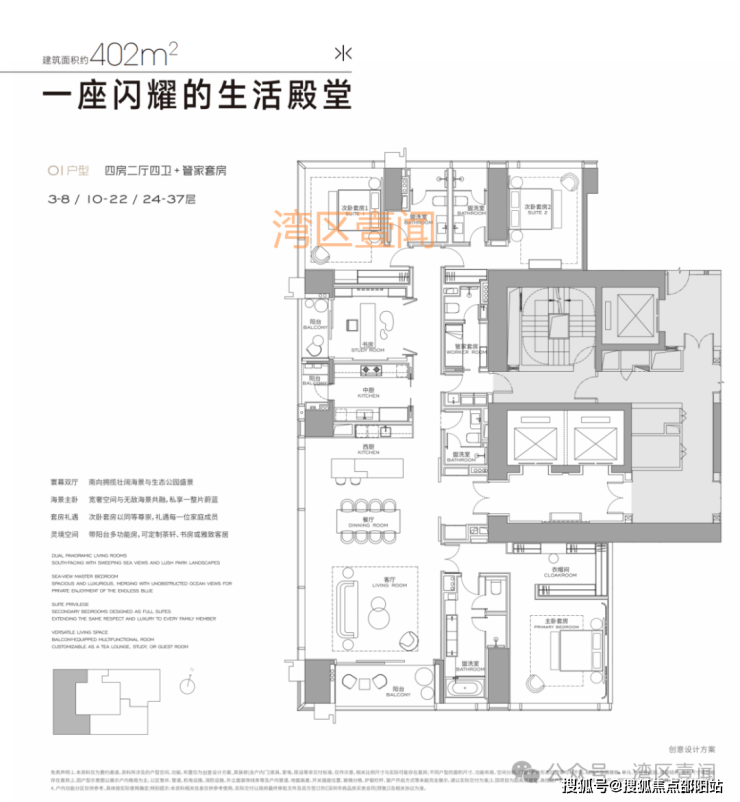 联泰超总湾顶豪公寓户型:304㎡、327㎡、402㎡、568㎡、1000㎡