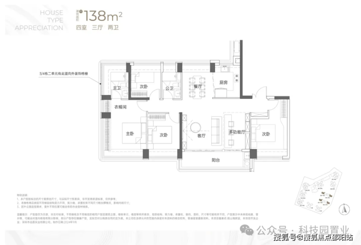 ⑥【一步到位性价比王牌 前海改善头等舱】4栋建面约138㎡奢阔山居范本:LDKB一体化,增配多功能厅、最大约15.5米南向四开间、约6m宽境阳台、主卧270°巨幕飘窗带独立卫浴及衣帽间、最高约94%拓展后综合使用率