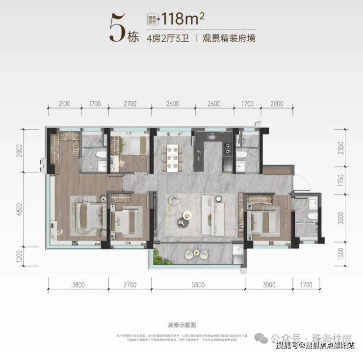 ◎5栋04房【约118㎡四房三卫】