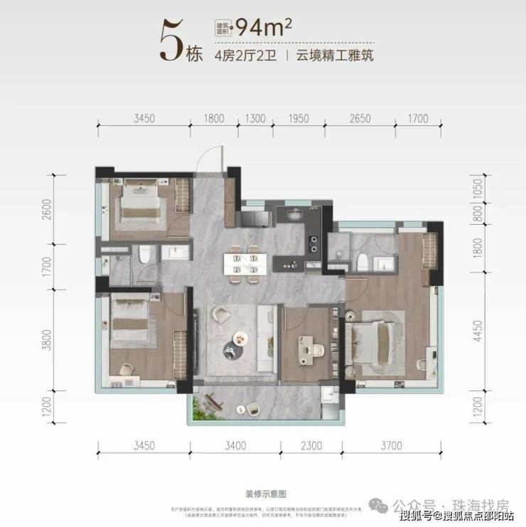 无界大横厅 四房(远超常规90㎡户型)