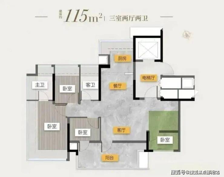 112/115㎡板楼,客厅约4米面宽,两个卧室大到能双边下床,主卧接近18方,270°飘窗,北向卧室进深常规是2.6米,这里直接去到2.X米。
