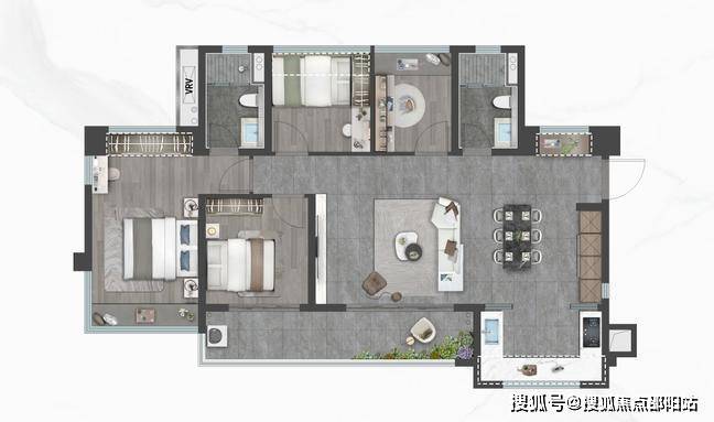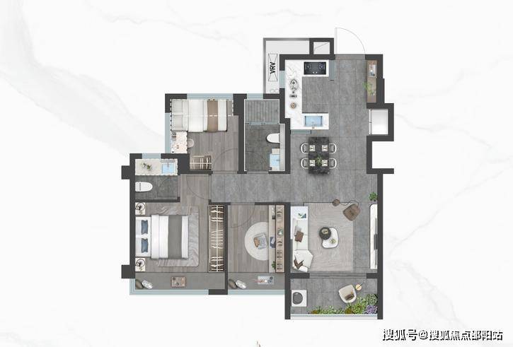 御雲:建面约80㎡三室两厅1.9卫,创新型1.9卫设计,臻享从容生活