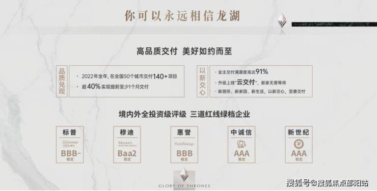 强交付力:全国项目100%如期交付,其中超40% 提前至少1个月交付,业主交付满意度91%;