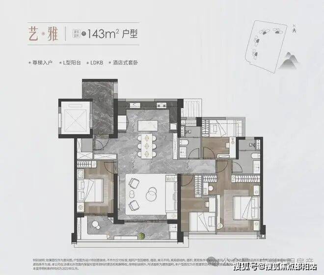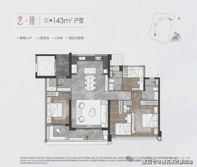 中海麓府体量不大,仅4栋住宅,40多层高的住宅(1#高40层,2-3#高44层,5#高41层),两梯三户,底下规划有1所12班幼儿园+1栋自持物业,货量在500套上下,它的面积段有三种,分别是建面约126㎡三房、143㎡和170㎡的四房