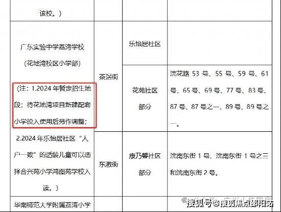 当然,今年省实的招生表上有个注明:“2024年暂定招生地段;待花地湾项目新建配套小学投入使用后另作调整”,即今年暂定这样,之后可能会有变动,所以具体还是要以当年的教育局招生计划为准。