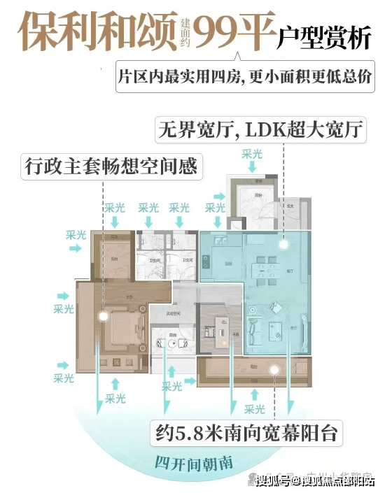 ▪LDK超大宽厅 ,近5.8米客厅开间,四开间朝南,28㎡豪华主套